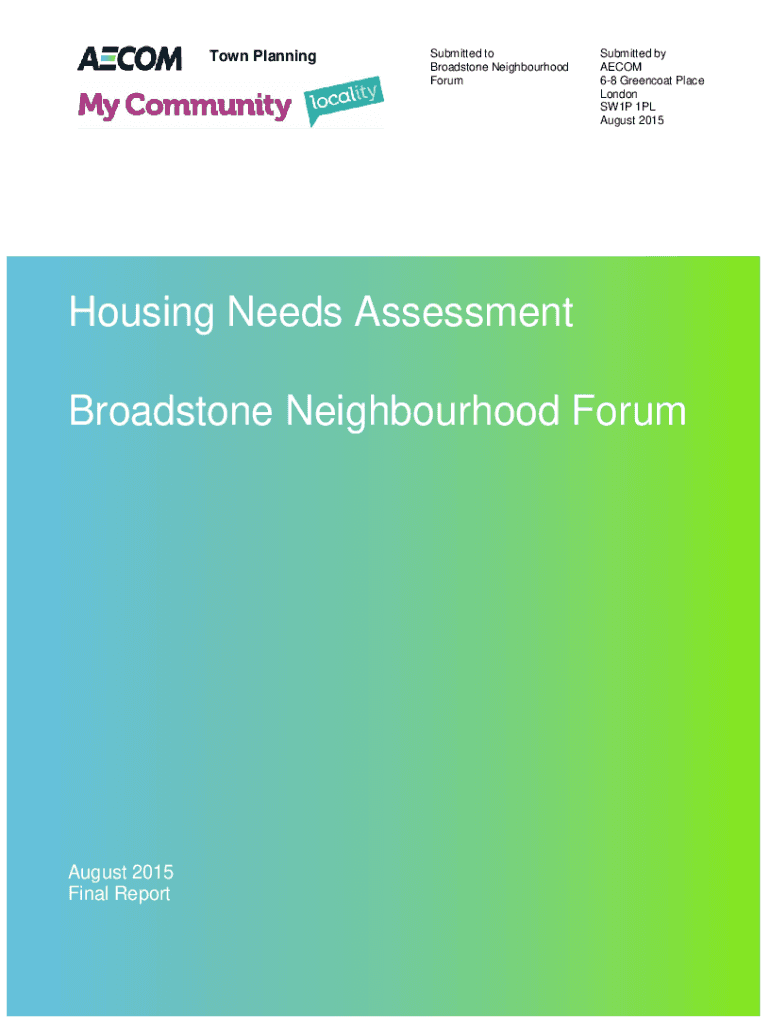 Town PlanningSubmitted to Broad stone Neighborhood ForumSubmitted by AE COM 68 Green coat Place London SW1P 1PL August 2015Housing Needs Assessment Broad stone Neighborhood Forum August 2015 Final