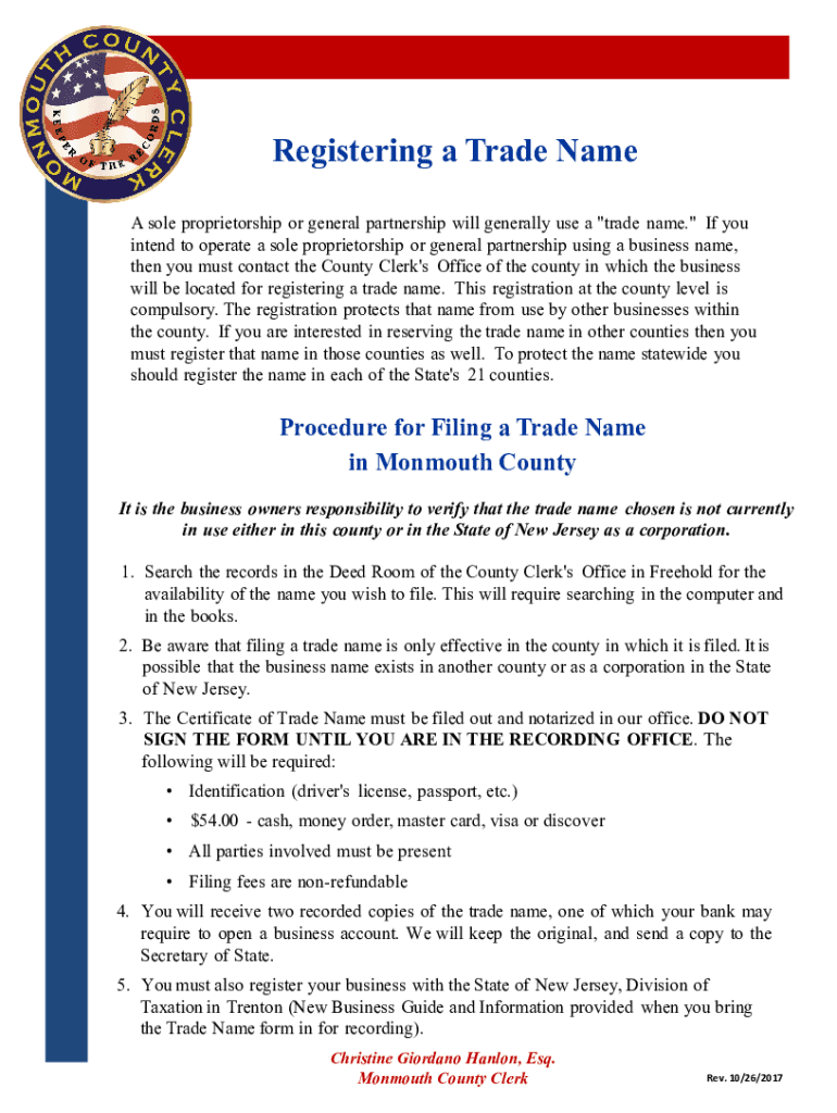 Get the free A sole proprietorship or general partnership will generally use a "trade name