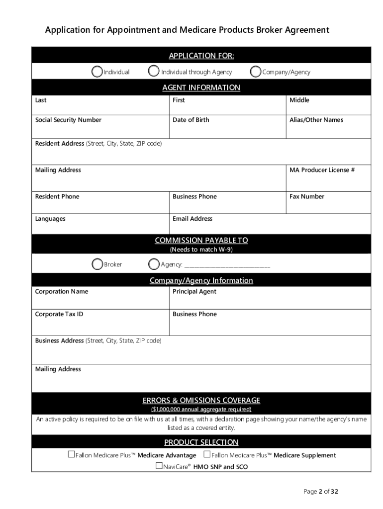 Get the free Broker Agreement Fallon Health Medicare Products