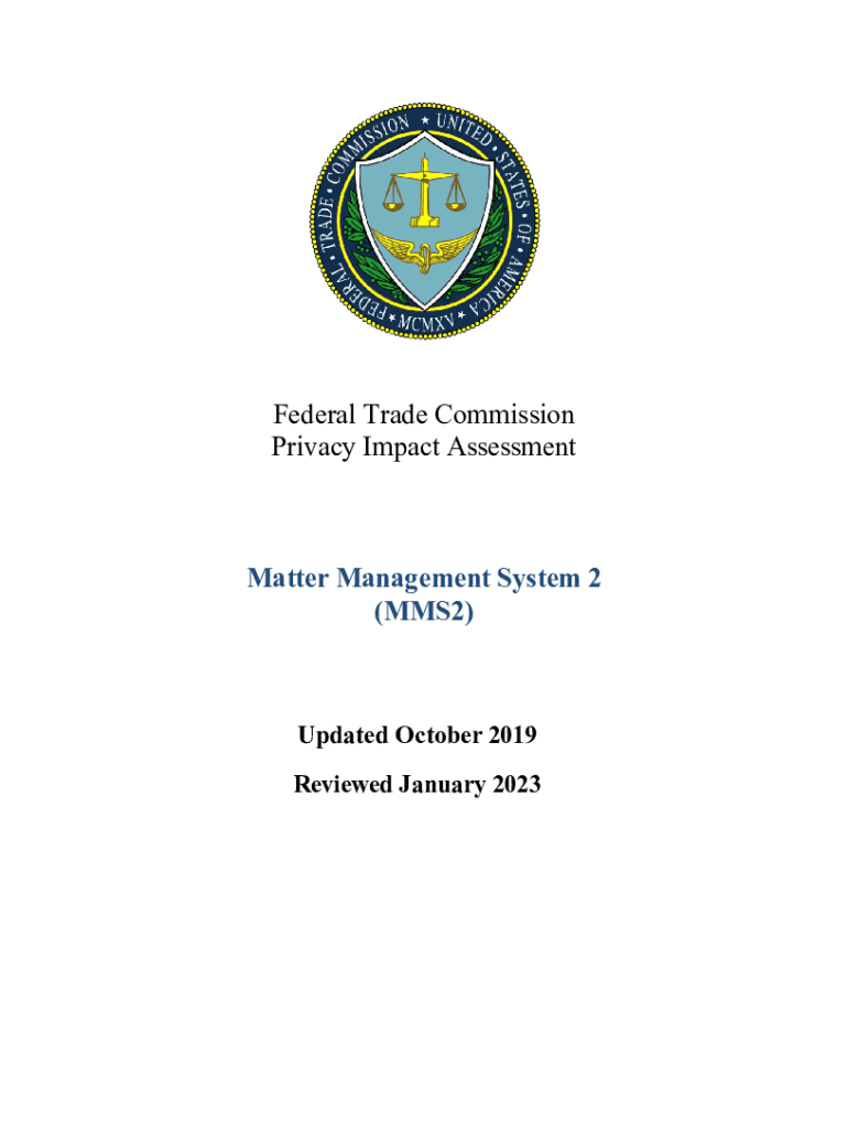 Federal Trade Commission Privacy Impact AssessmentMatter Management System 2 (MMS2)Updated October 2019 Reviewed January 2023Table of Contents 1System Overview ......................................................................................................................