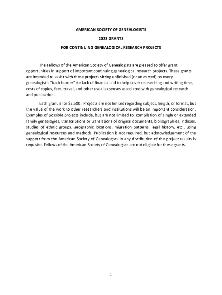 Get the free Grants for Continuing Genealogical Research Projects