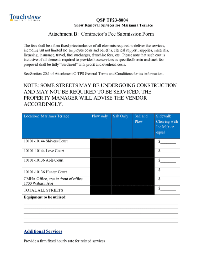 DSP TP238004Snow Removal Services for Marianna TerraceAttachment B: Contractors Fee Submission Form