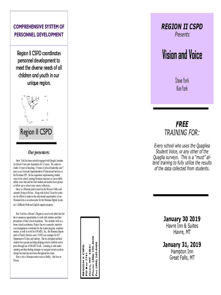 COMPREHENSIVE SYSTEM OF PERSONNEL DEVELOPMENTREGION II Subregion II CSP coordinates personnel development to meet the diverse needs of all children and youth in our unique region. Vision and Voiceprints:Steve