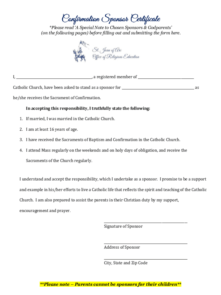 Get the free *Please read 'A Special Note to Chosen Sponsors & Godparents' ...