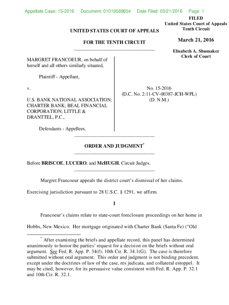 Appellate Case: 152016Document: 01019589654Date Filed: 03/21/2016UNITED STATES COURT OF APPEALS FOR THE TENTH CIRCUIT ___ MARGRET FRANCE, on behalf of herself and all others similarly situated, Page: