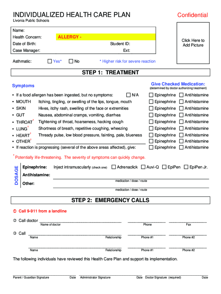 INDIVIDUALIZED HEALTH CARE PLANConfidentialLivonia Public Schoolmate: