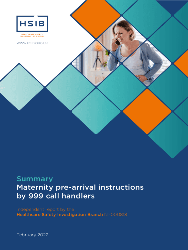 WWW.ESIB.ORG. Summary Maternity prearrival instructions by 999 call handlers Independent report by the Healthcare Safety Investigation Branch NI000818February 2022Providing feedback and comment on