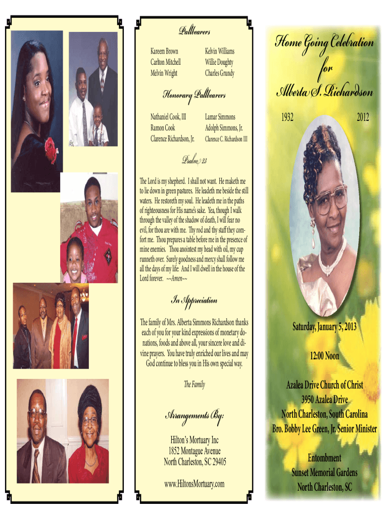 Get the free Home Going Celebration for Alberta S. Richardson