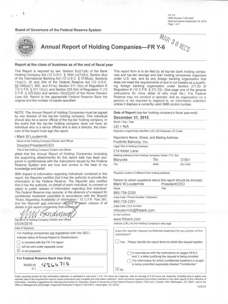 FRY6 OMB Number 71000297 Approval expires September 30, 2018-Page 1 of 2Board of Governors of the Federal Reserve Systematical Report of Holding Companies FR Y6 Report at the close of business as