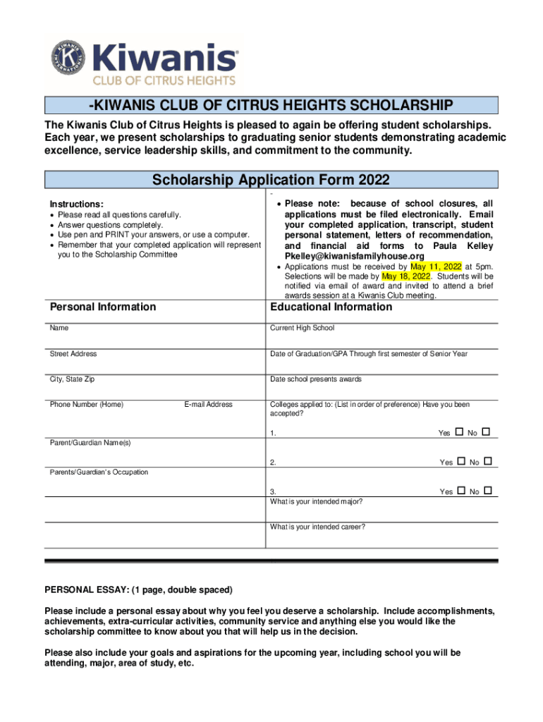 How to fill out scholarship application - kiwanis