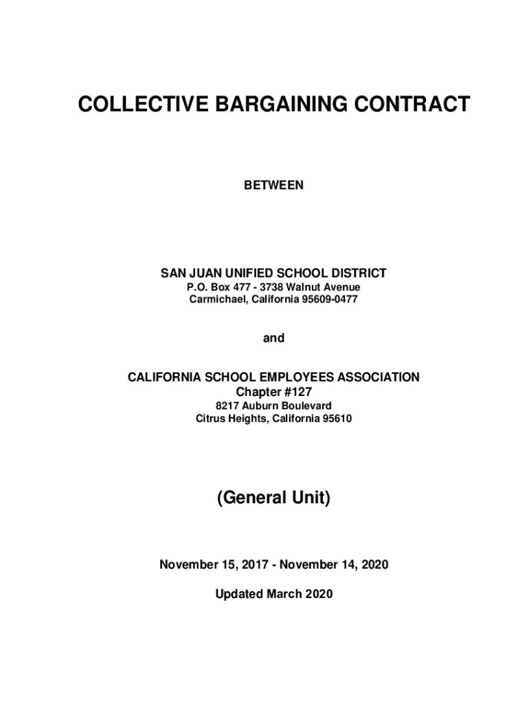 COLLECTIVE BARGAINING CONTRACTBETWEENSAN JUAN UNIFIED SCHOOL DISTRICT P.O. Box 477 3738 Walnut Avenue Carmichael, California 956090477and CALIFORNIA SCHOOL EMPLOYEES ASSOCIATION Chapter #127 8217