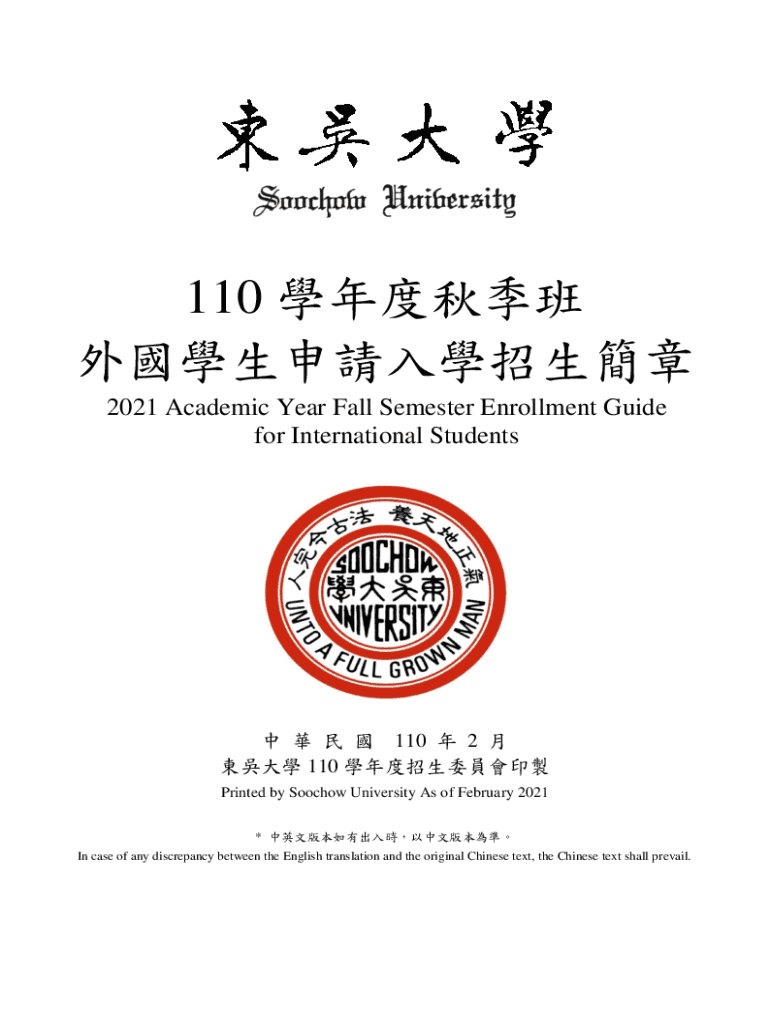 110 2021 Academic Year Fall Semester Enrollment Guide for International Students 110 2 110 Printed by Somehow University As of February 2021 * In case of any discrepancy between the English translation