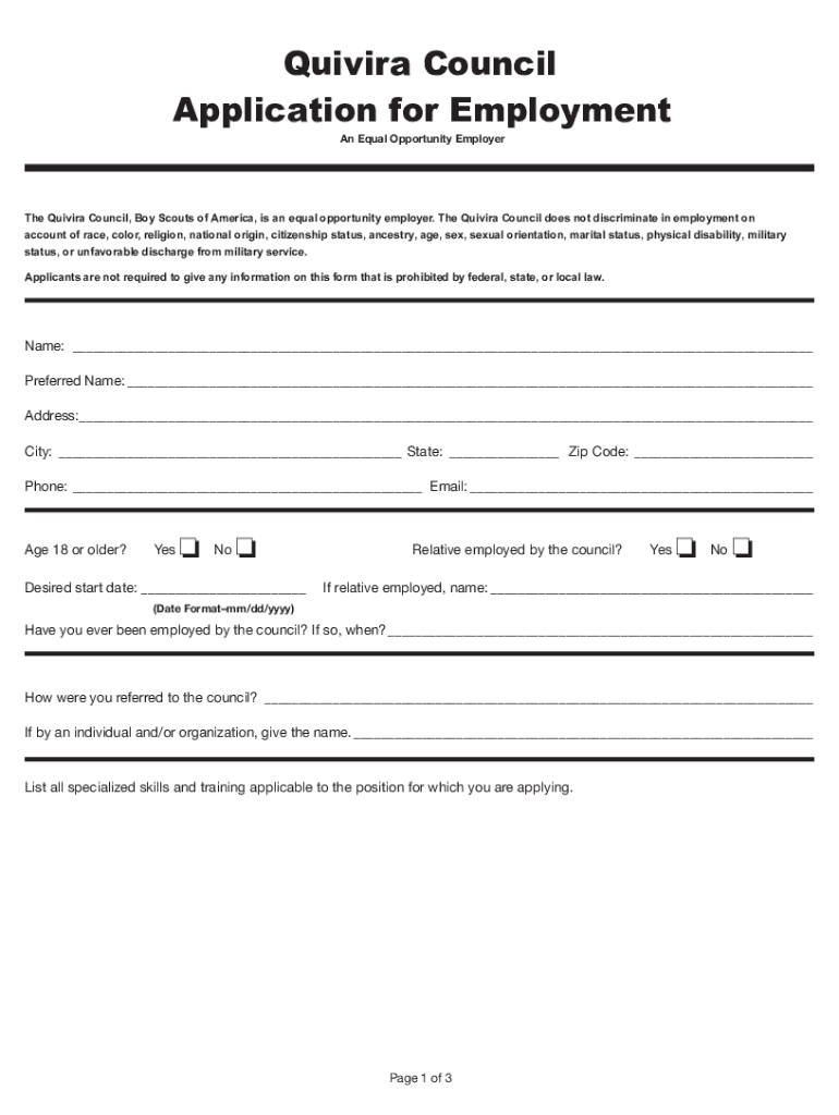 Quiver Council Application for Employment An Equal Opportunity Employee Quiver Council, Boy Scouts of America, is an equal opportunity employer. The Quiver Council does not discriminate in employment