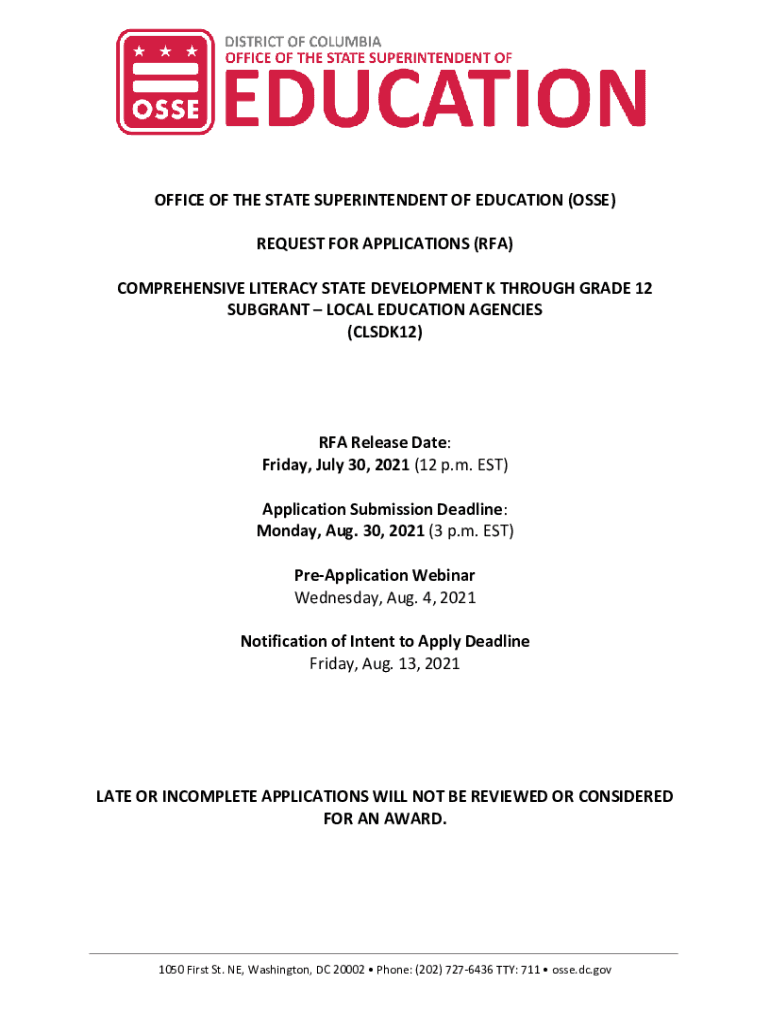Get the free Comprehensive Literacy State Development Grant (K-12) Pre ... - osse dc
