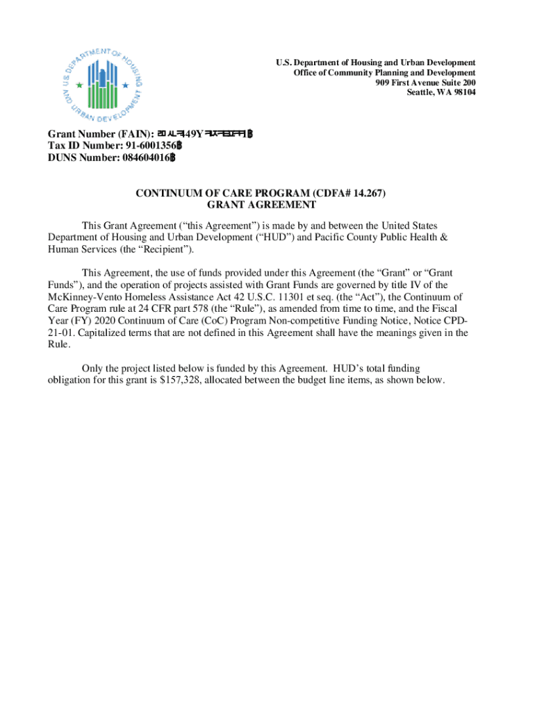 U.S. Department of Housing and Urban Development Office of Community Planning and Development 909 First Avenue Suite 200 Seattle, WA 98104Grant Number (FAIN): WA0449Y0T012001 Tax ID Number: 916001356