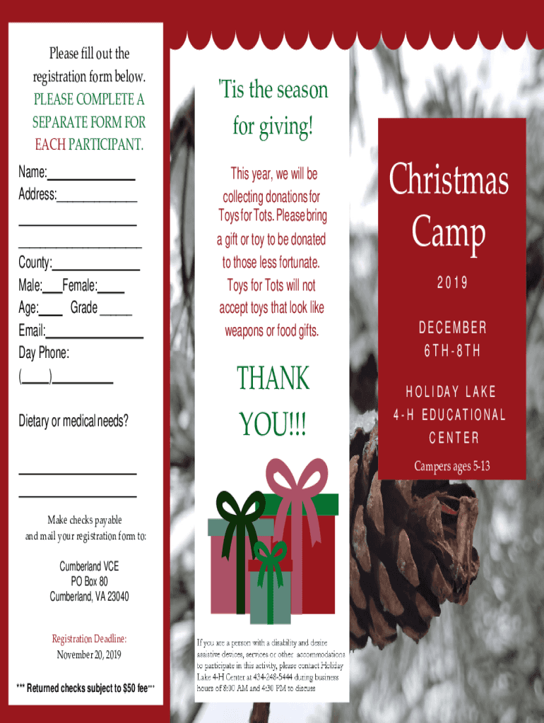 Please fill out the registration form below. PLEASE COMPLETE A SEPARATE FORM FOR EACH PARTICIPANT. Name: _ Address:___ ___ County: Male: Female: Age: Grade ___ Email: Day Phone: () Dietary or medical