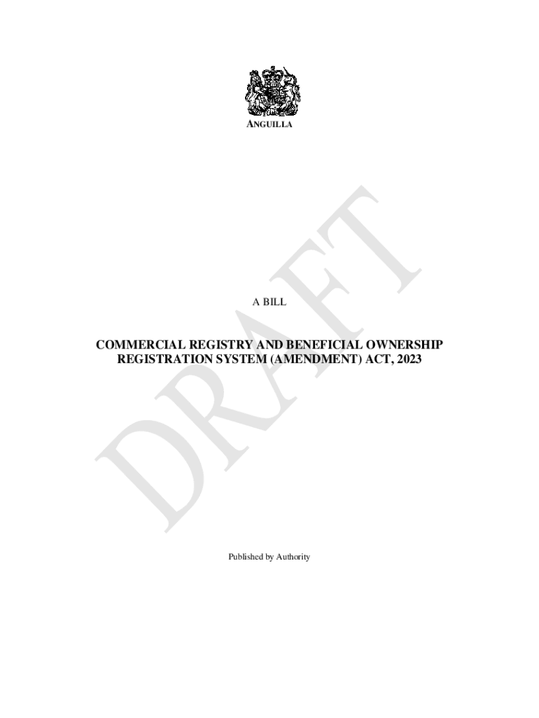 ANGUILLA BILLCOMMERCIAL REGISTRY AND BENEFICIAL OWNERSHIP REGISTRATION SYSTEM (AMENDMENT) ACT, 2023Published by AuthorityAnguillaCommercial Registry and Beneficial Ownership Registration System (Amendment)