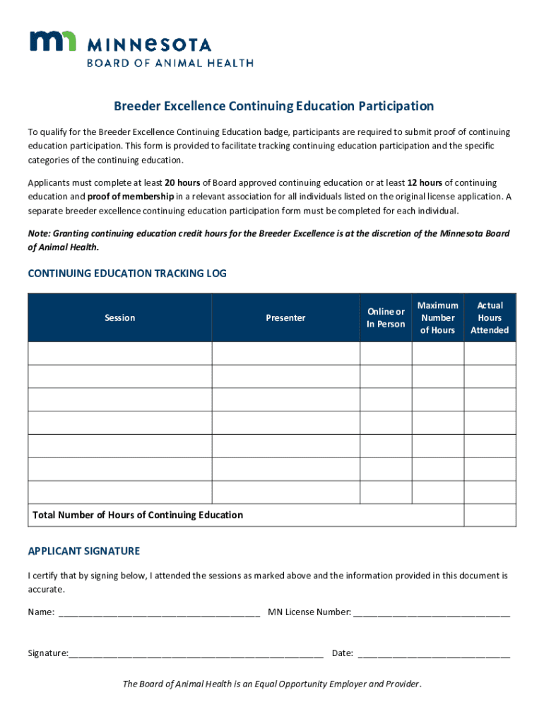 Get the free Breeder Excellence Continuing Education Participation form. Presents requirements an...