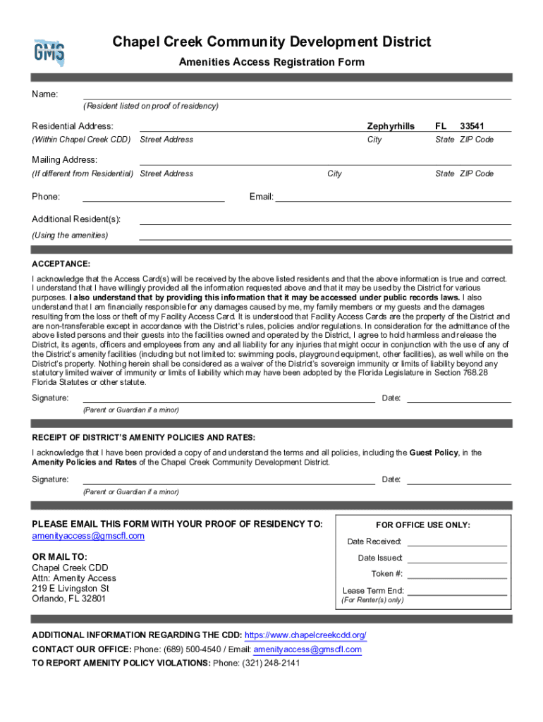 CHAPEL CREEK COMMUNITY DEVELOPMENT DISTRICTAMENDED AMENITY POLICIES AND READOPTED MAY 3, 20221 LAW IMPLEMENTED: SS. 190.011, 190.035, FLA. STAT. (2021); In accordance with Chapter 190 of the Florida