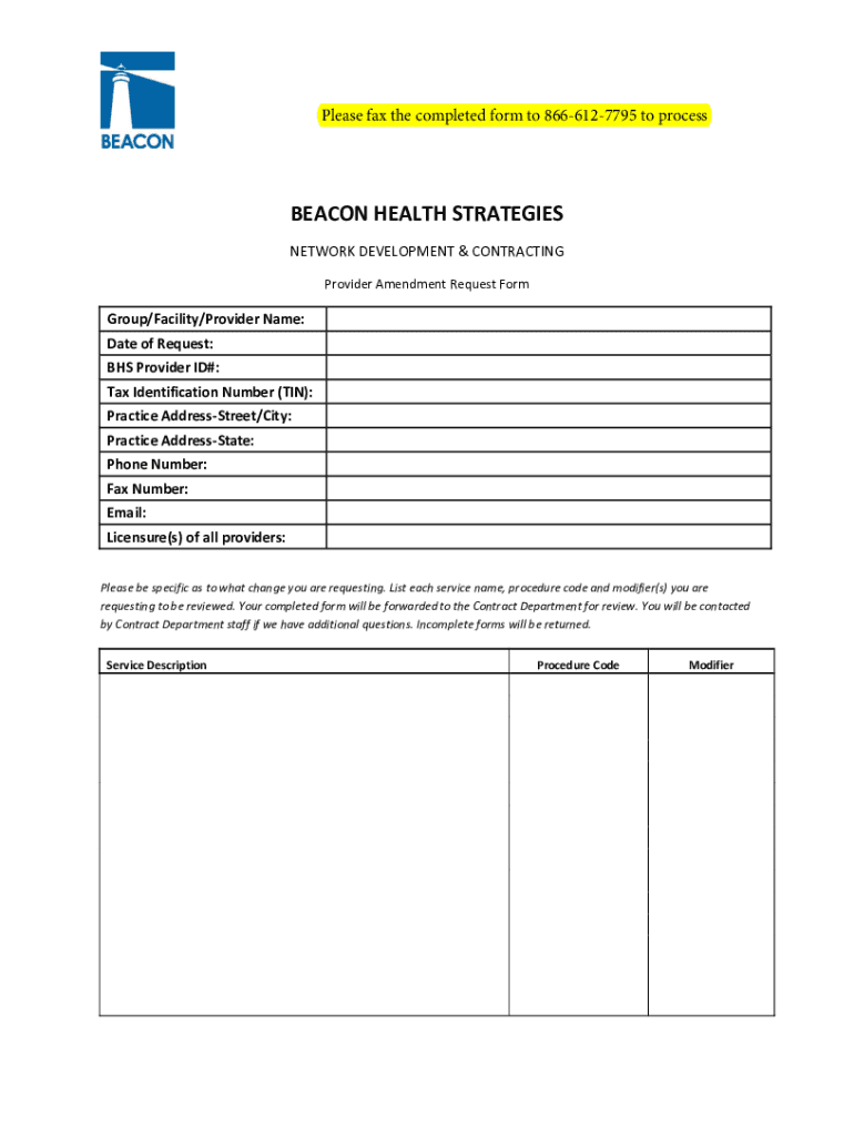 Please fax the completed form to 8666127795 to processBEACON HEALTH STRATEGIES