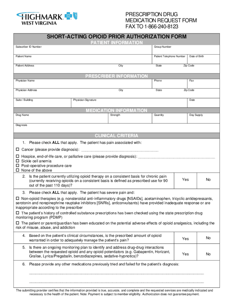Get the free Short-Acting Opioid Prior Authorization Form