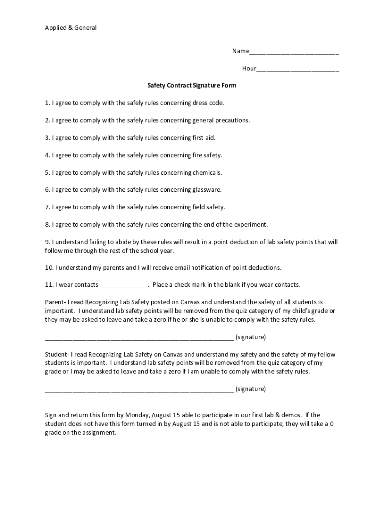Get the free Safety Contract Signiture Form - General & Applied.pdf