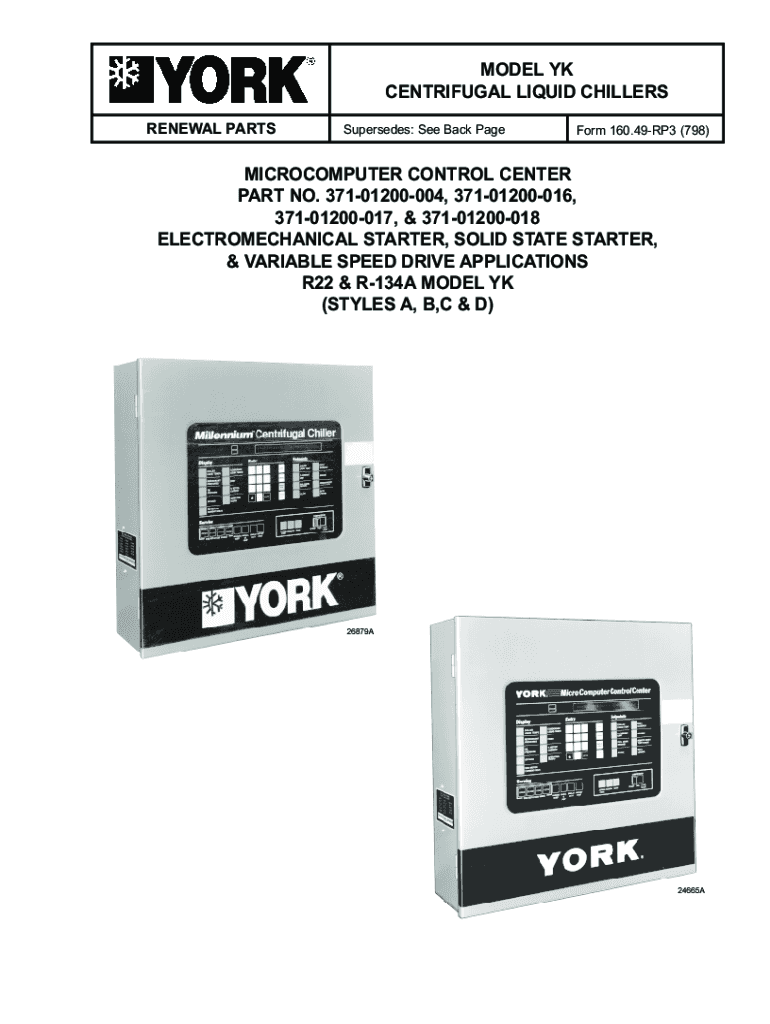 Get the free YK Style A, B, C, & D Centrifugal Liquid Chillers, Renewal Parts (Form 160.4...