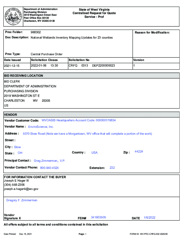 The following documentation is an electronically submitted vendor response to an advertised solicitation from the West Virginia Purchasing Bulletin within the Vendor Self-service portal at oasis.gov.