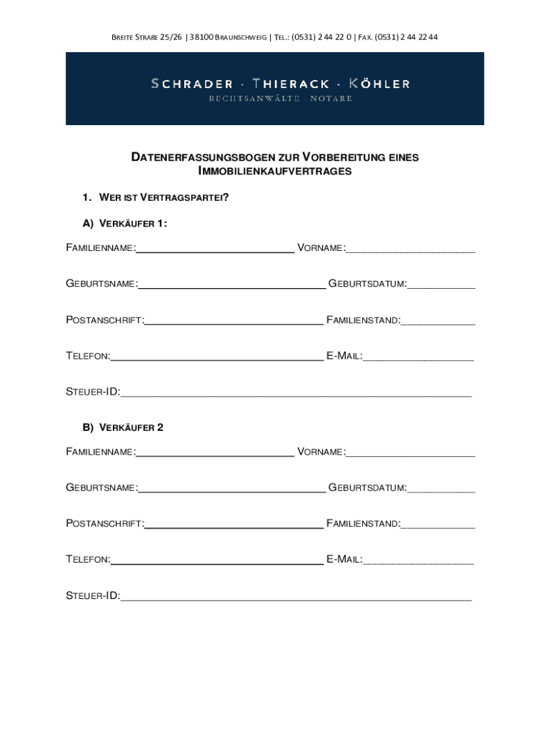 BRE ITE STRAW 25/26 | 38100 BRAUNSCHWEIG | TEL.: (0531) 2 44 22 0 | FAX. (0531) 2 44 22 44DATENERFASSUNGSBOGEN OUR VORBEREITUNG LINES