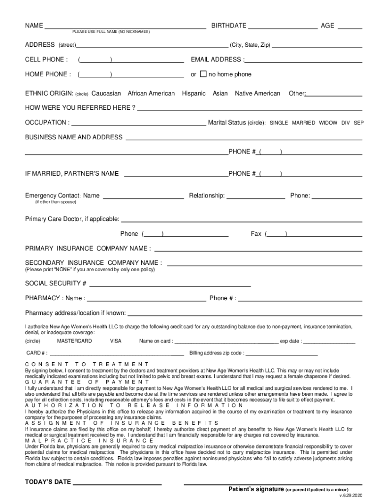 NAMEBIRTHDATEAGEPLEASE useful NAME (NO NICKNAMES)ADDRESS (street)(City, State, Zip)CELL PHONE :()EMAIL ADDRESS :HOME PHONE :()ethnic ORIGIN: (circle) Caucasian African AmericanHispanicno home phone