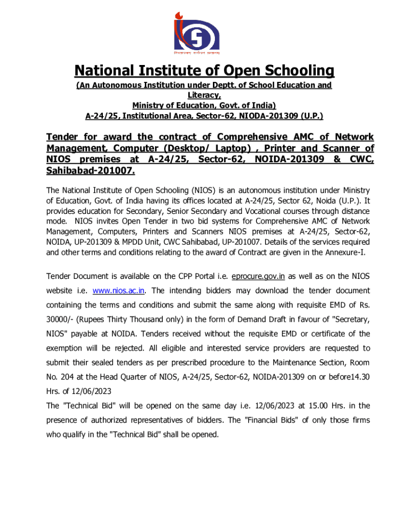 Get the free National Institute of Open Schooling (NIOS) is an ...