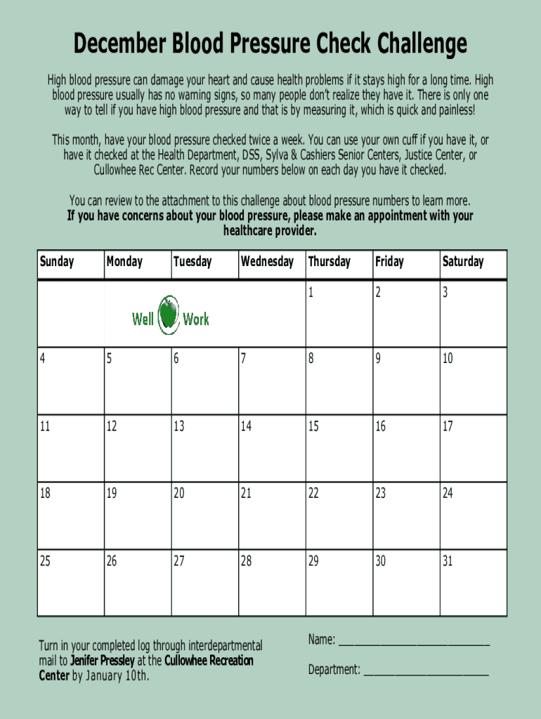 December Blood Pressure Check Challenge High blood pressure can damage your heart and cause health problems if it stays high for a long time. High blood pressure usually has no warning signs, so many