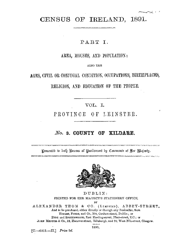 Census OF IRELAND, 1891.PART I. AREA, HOUSES, AND POPULATION: ALSO THEATER, CIVIL OR CONJUGAL CONDITION, OCCUPATIONS, BIRTHPLACE.8, RELIGION, AND EDUCATION OF THE PEOPLE.VOL. I.PROVINCE OF LEICESTER.