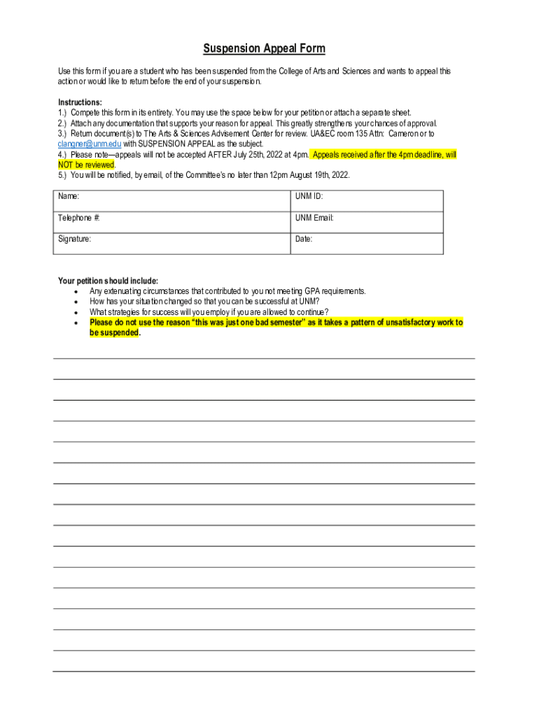 Get the free Suspension Appeal Form 202210