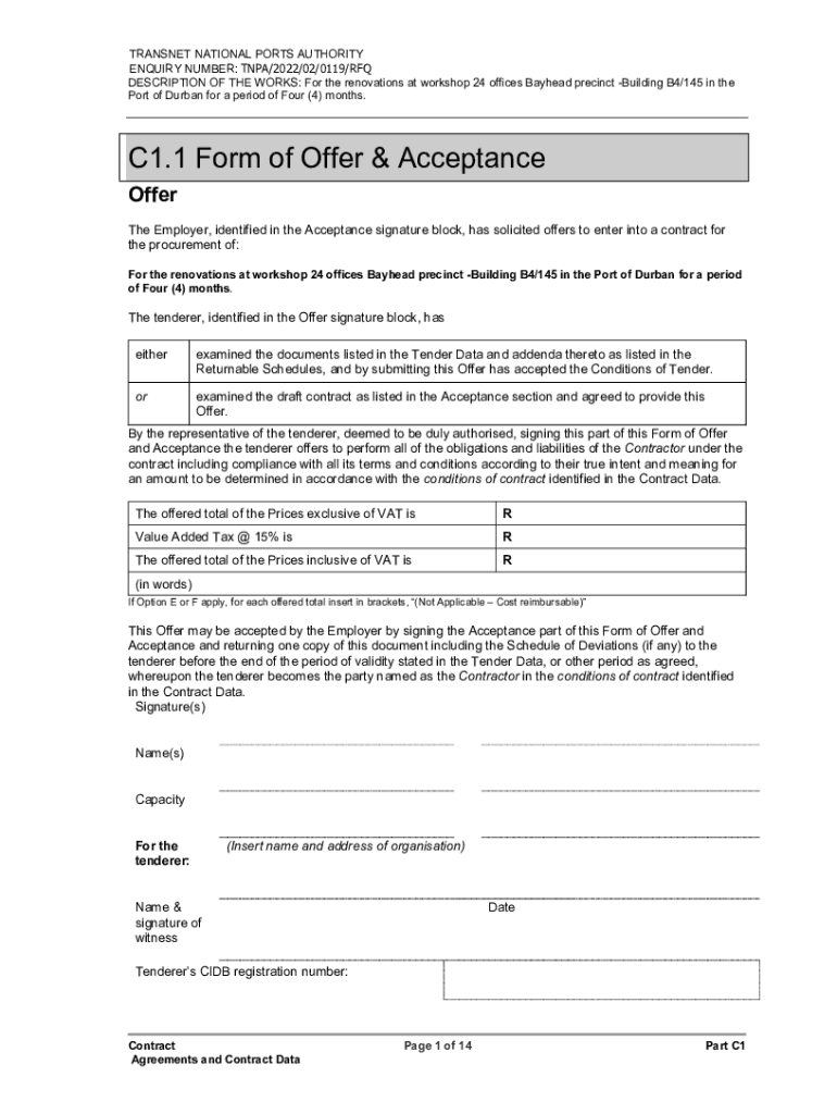 TRANSFER NATIONAL PORTS AUTHORITY Inquiry NUMBER: TNA/2022/02/0119/RFQ DESCRIPTION OF THE WORKS: For the renovations at workshop 24 offices Bay head precinct Building B4/145 in the Port of Durban