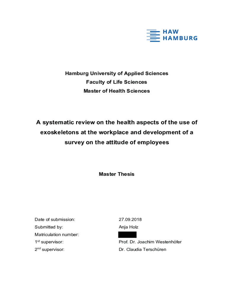 Hamburg University of Applied Sciences Faculty of Life Sciences Master of Health Sciences systematic review on the health aspects of the use of exoskeletons at the workplace and development of a survey