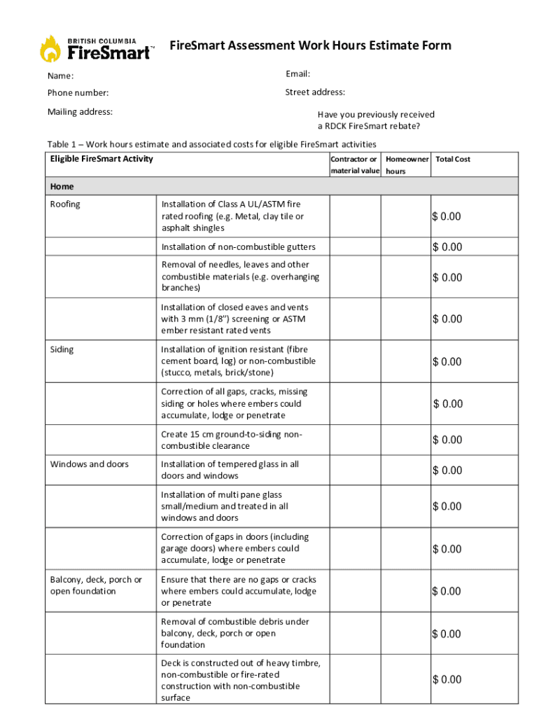 Get the free FireSmart Rebate Work Hours Estimate Form - ...