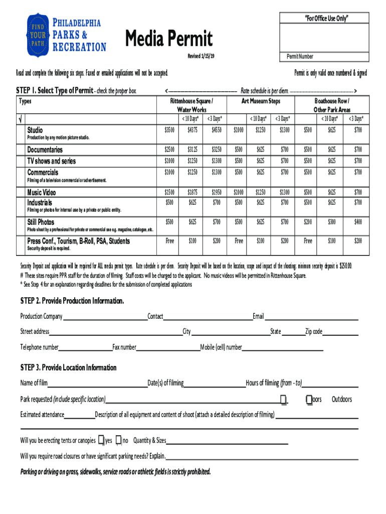 For Office Use Only Media Permit Revised 1/15/19Permit Numbered and complete the following six steps. Faxed or emailed applications will not be accepted. STEP 1. Select Type of Permit check the proper