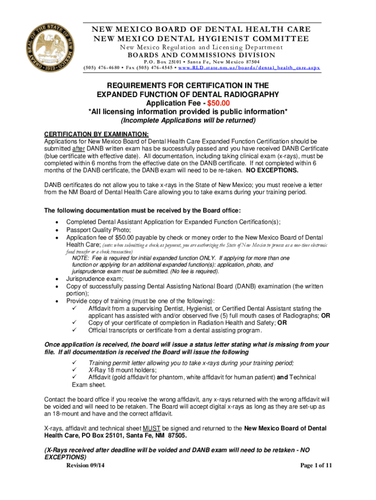 NEW MEXICO BOARD OF DENTAL HEALTH CARE NEW MEXICO DENTAL HYGIENIST COMMITTEE New Mexico Regulation and Licensing Department BOARDS AND COMMISSIONS DIVISION P. O. Box 251 01 SA NT a Fe, New Mexico
