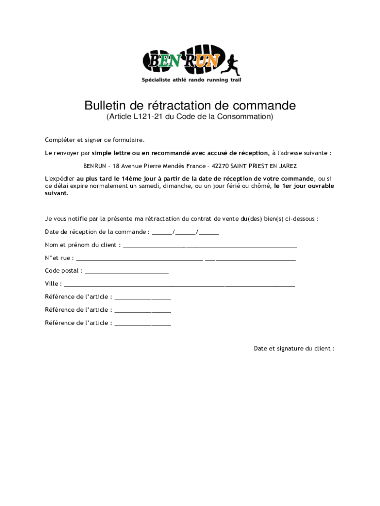 Obtenir le gratuit Bulletin de rtractation de commande