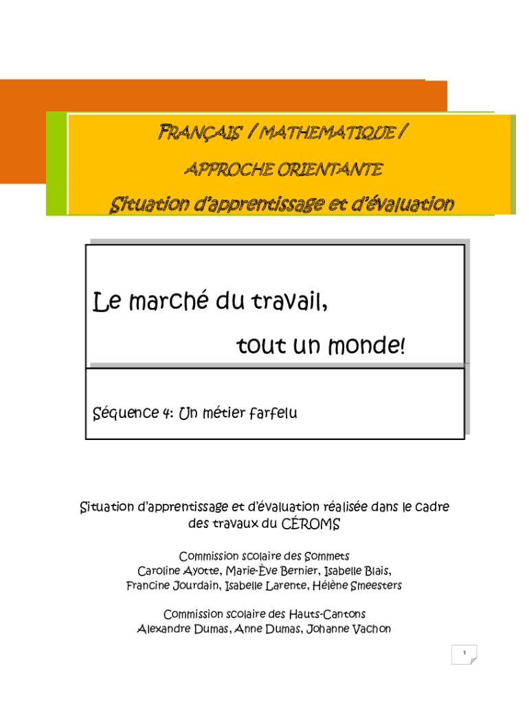 APPROACH ORIENTANTESituation dapprentissage et evaluation march Du travail,