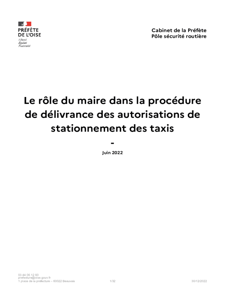 Cabinet de la Prate PLE security routinely RLE Du Maine days la procedure DE deliverance DES authorizations de stationnement DES taxis Join 202203 44 06 12 60 prefecture@oise.gouv.fr 1 place DE la
