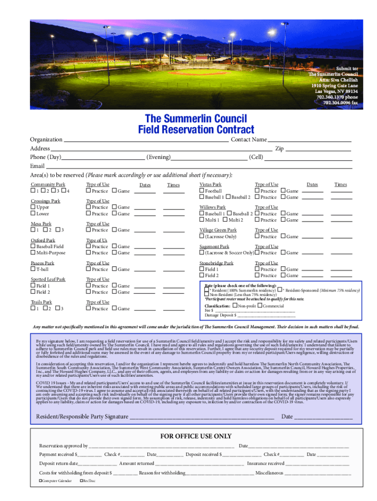Get the free The Summerlin Council Field Reservation Contract