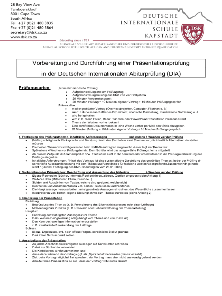 Holen Sie sich kostenlos in der Deutschen Internationalen Abiturprfung (DIA)