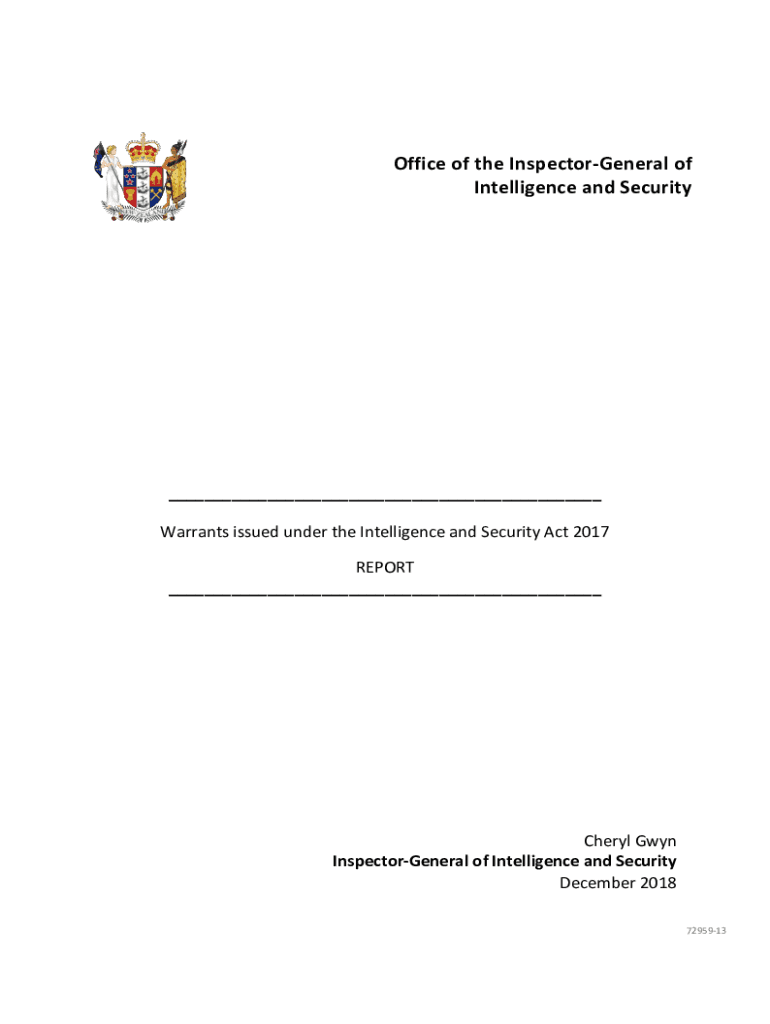 Office of the InspectorGeneral of Intelligence and Security___ Warrants issued under the Intelligence and Security Act 2017 REPORT ___Cheryl Gwyn InspectorGeneral of Intelligence and Security December