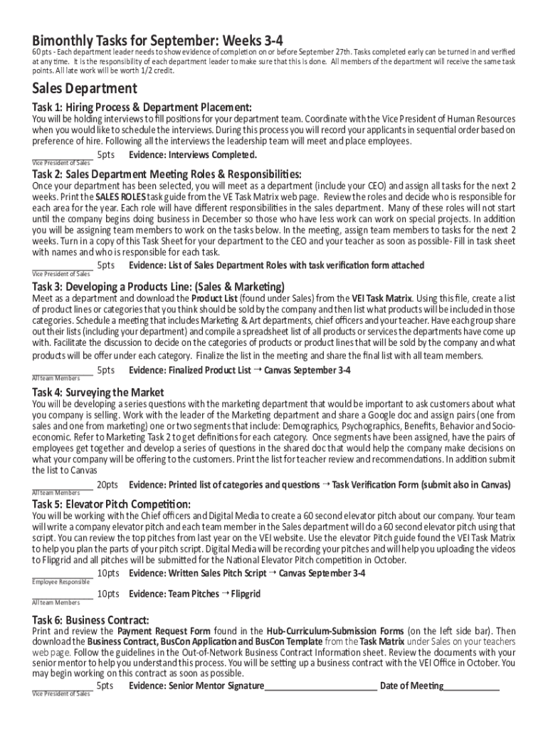 Get the free Bimonthly Tasks for September: Weeks 3-4 Sales ...
