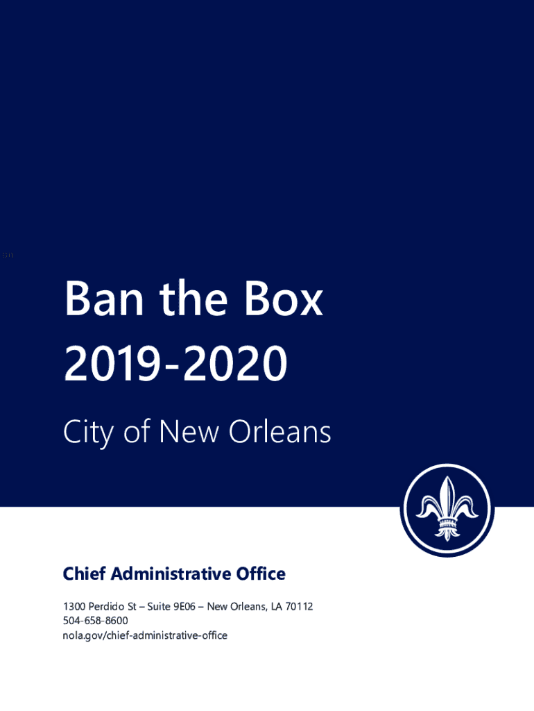 Orbán the Box 20192020 City of New OrleansChief Administrative Office 1300 Per dido St Suite 9E06 New Orleans, LA 70112 5046588600 nola.gov/chiefadministrativeofficeTable of Contents Introduction