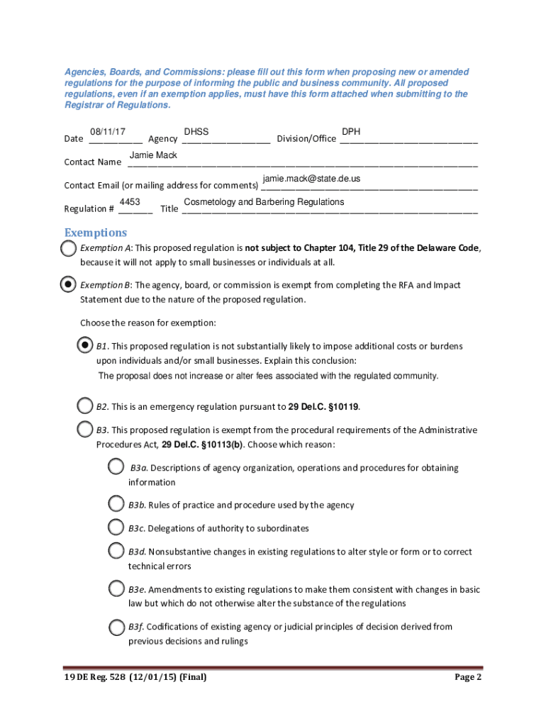 Regulatory Flexibility Analysis and Impact Statement Form For Proposed New and Amended Regulations Affecting Small Businesses or Individuals Introduction Beginning January 1, 2016, agencies submitting