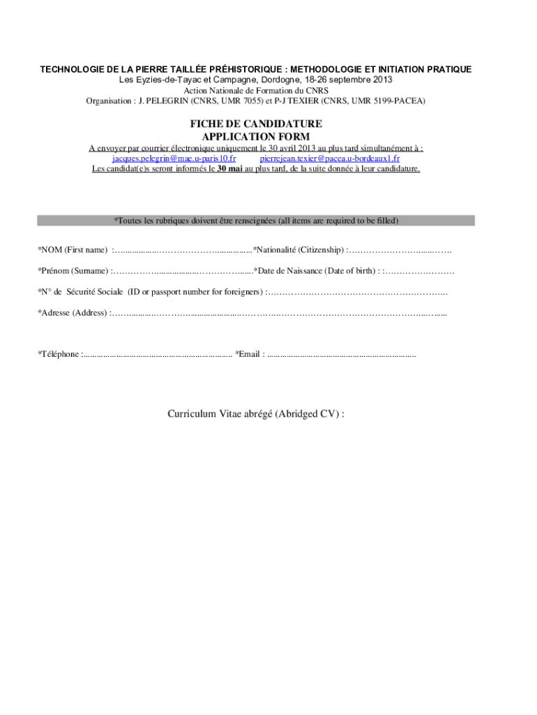 Obtenir le gratuit FICHE DE CANDIDATURE APPLICATION FORM ...