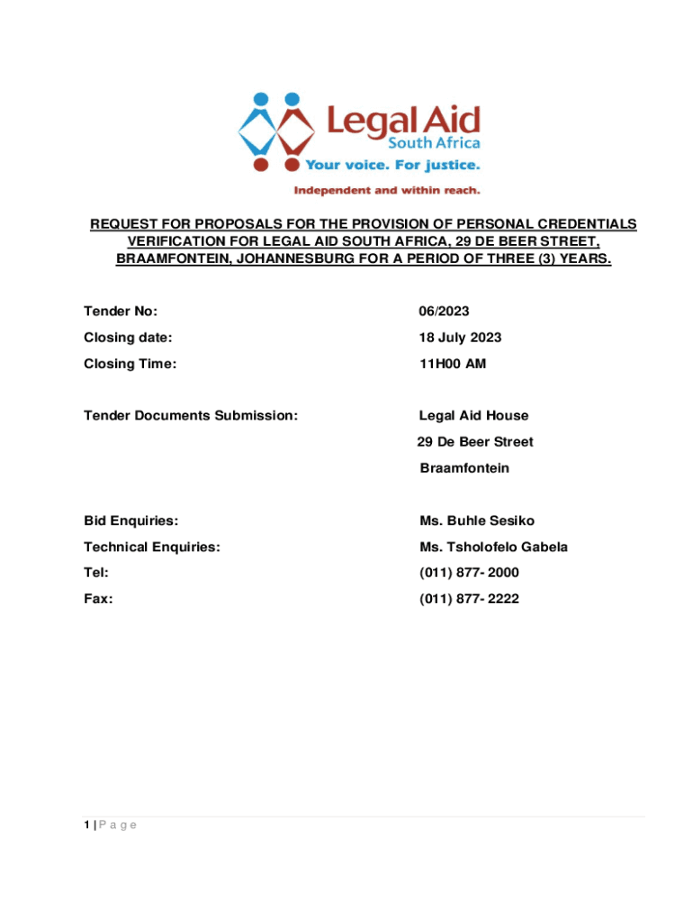 BLOEMFONTEIN, JOHANNESBURG FOR A PERIOD OF THREE (3) YEARS. Tender No:06/2023Closing